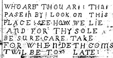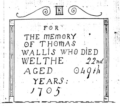 23) Standing another stone, which stone I take to be the one placed at the foot of Thomas Wallis's Grave: being the same kind of stone before mentioned: the following cut thereon