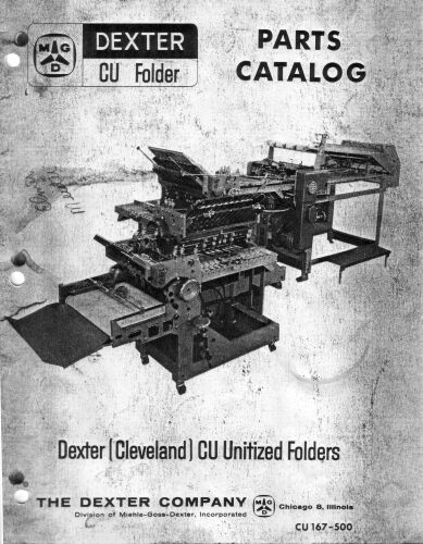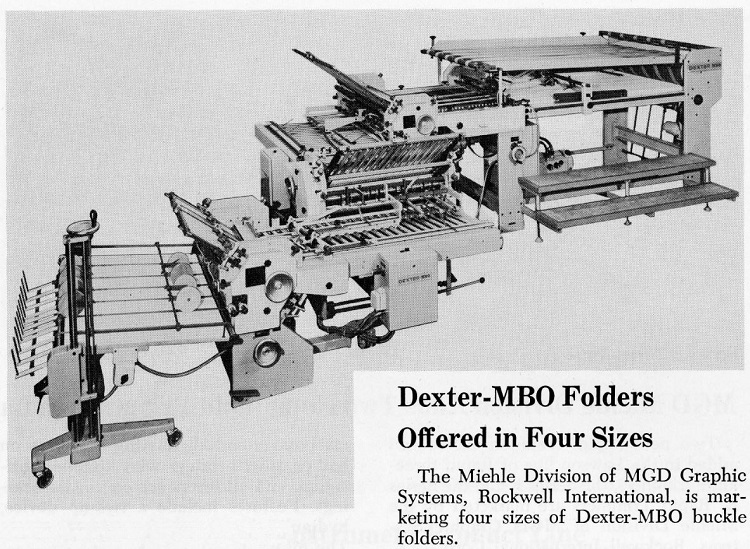 From a 1975 the Inland Printer magazine- From the above information, now you can aproximately date these manuals, above, and at right. Dexter's folders under MGD when owned by North American Rockwell dropped the "Cleveland" brand name. |