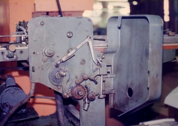 ![]() Dog pawl ratcheting feeders with counterweight bar (not seen) for sheet weight were long since replaced by electrical finger feeders. |